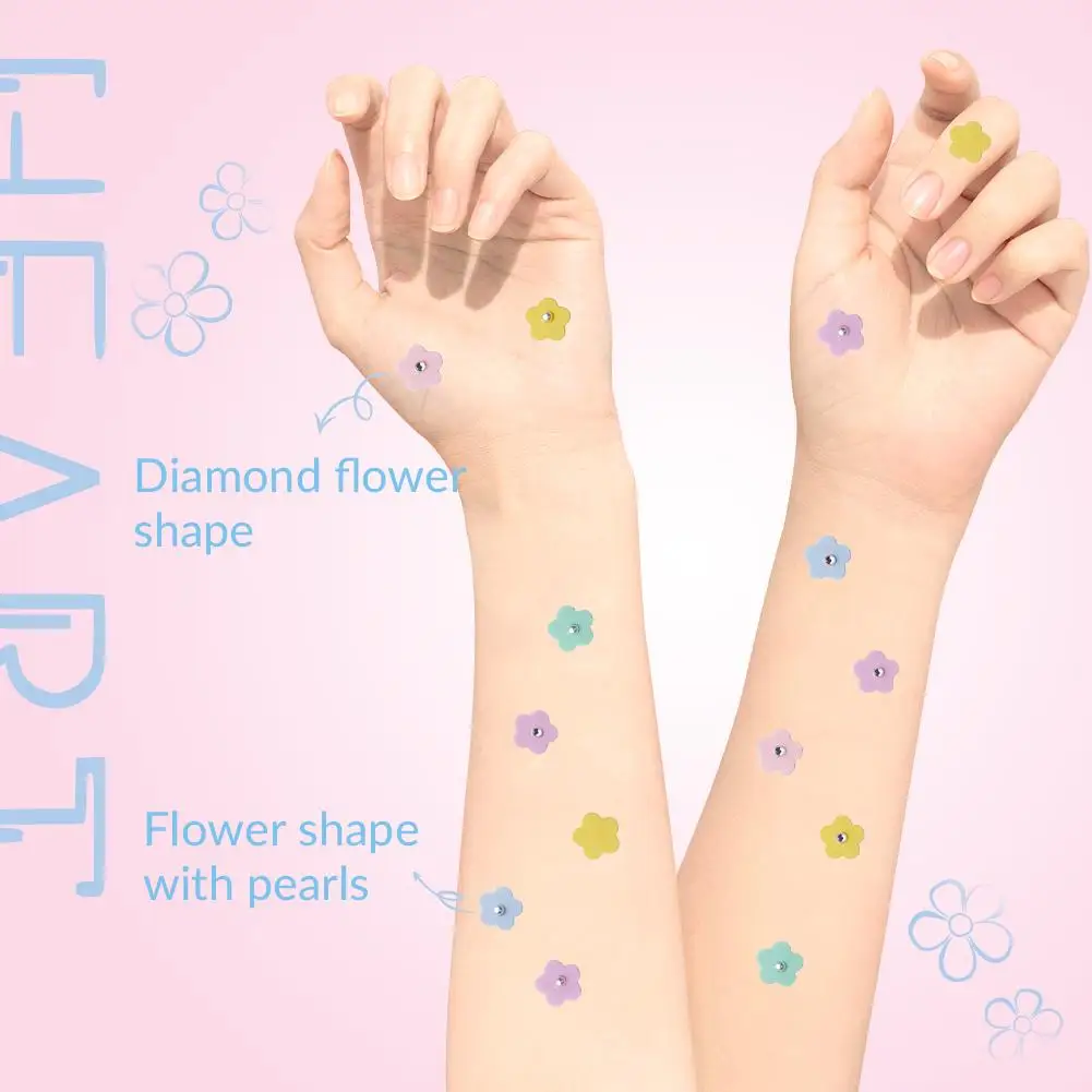 1.Remendo de acne em forma de flor com diamantes e pérolas.
